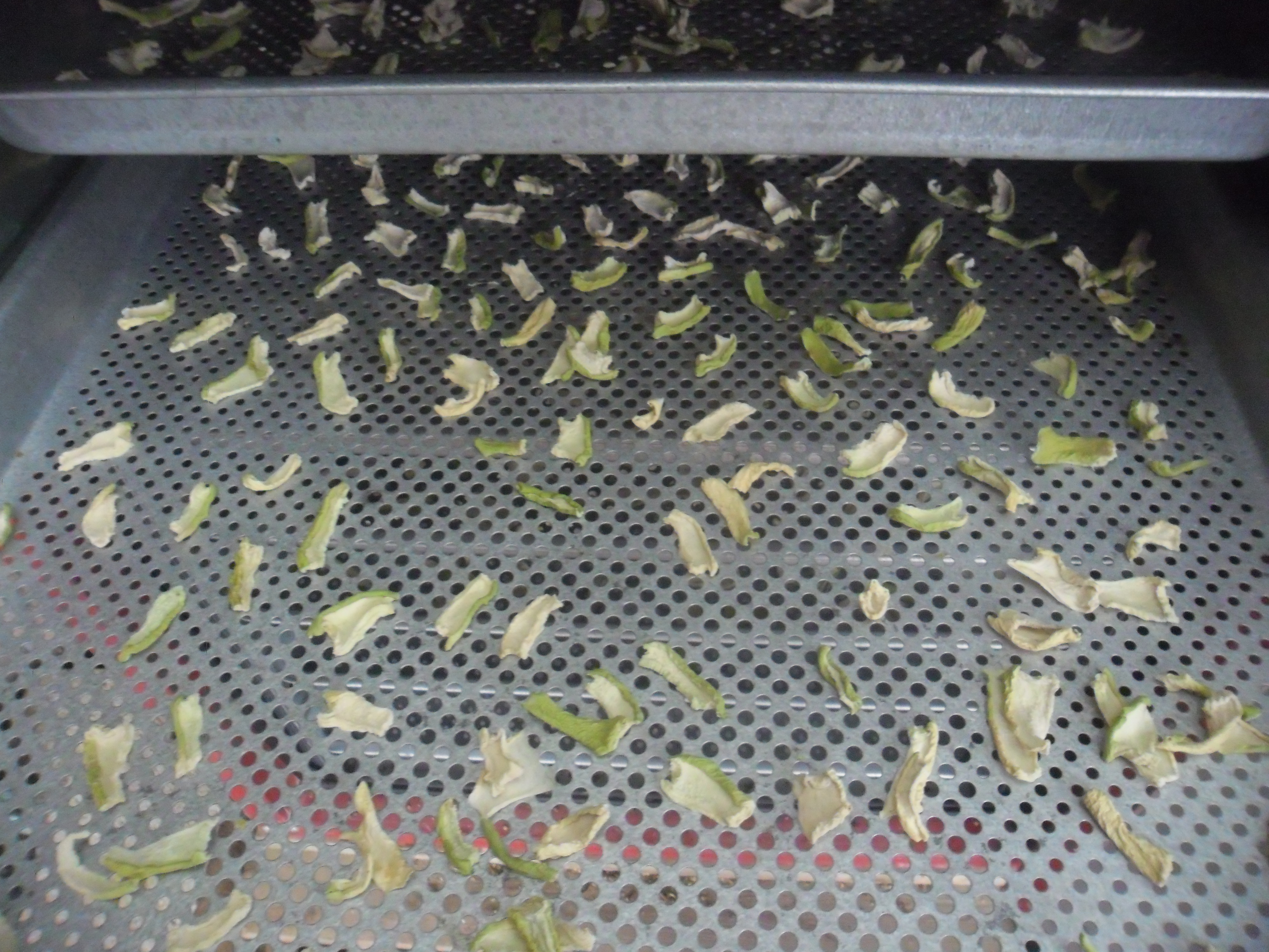 그리고, 채반에 고르게 펴서, 건조기에 적당한 온도로